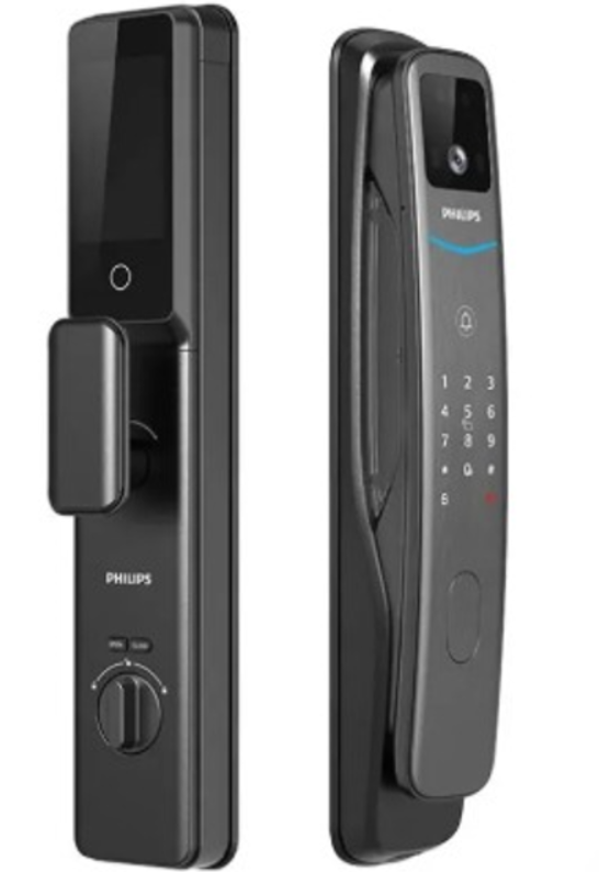 The Philips EasyKey DDL702‑FVP is a premium smart door lock with 3D facial recognition, Wi‑Fi remote monitoring, wide‑angle night vision camera, and multiple unlocking methods including fingerprint, PIN, RFID and key. Its integrated display and app connectivity provide secure, contactless access and real‑time home entry alerts for modern smart homes